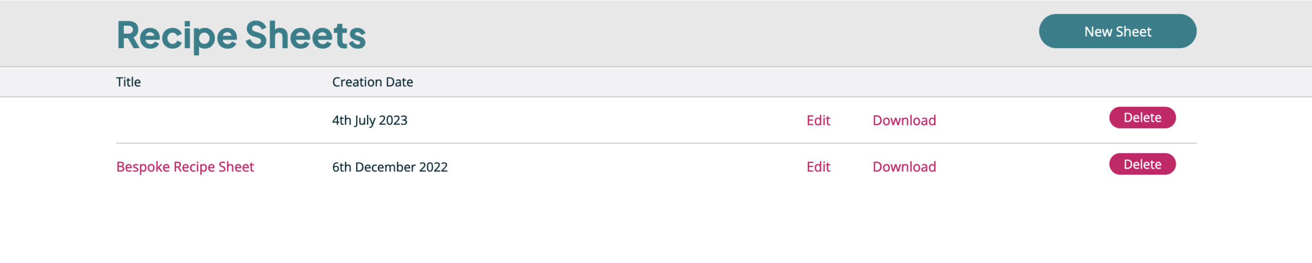 Here you can build a list of recipes personalised for you clients. The ones that you compile will be kept for you for future use.